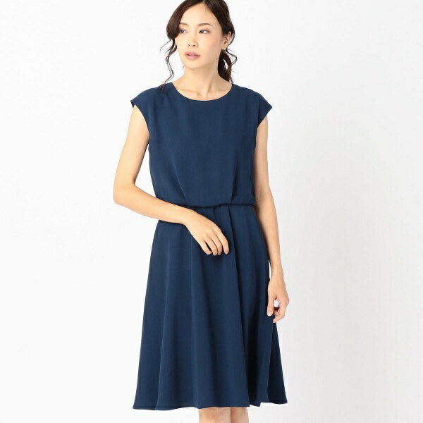 コムサイズム COMME CA ISM 日本素材 リネンライク フレンチスリーブ ワンピース (ネイビー)