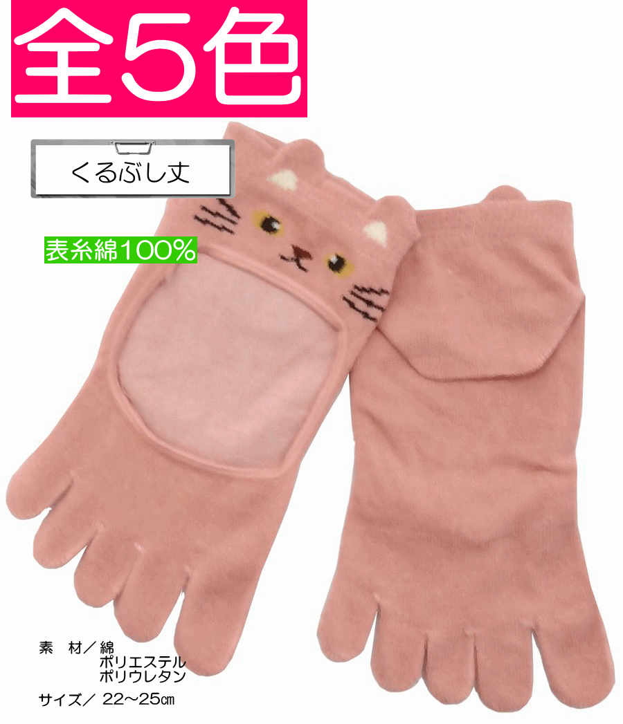 5本指ソックス くるぶし丈 レディース 甲開き ピコ耳猫 5本指スニーカーソックス 表糸綿100%靴下【メール便可/20】[18s][17s][g185]【05P03Dec16】
