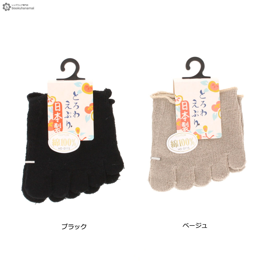 婦人用【綿97%】スラブ糸使用・五本指ゴムなしソックス【日本製】